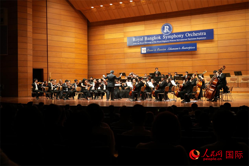 人平易近网曼谷10月19日电 (记者简承渊 白元琪)本地时间10月18日晚,为庆贺中华人平易近国取泰王国建交50周年,泰国皇家曼谷交响乐团基金会联袂泰国中国企业总商会,正在泰国文化核心隆沉呈献《钢琴取热情——舒曼的杰做》音乐会,以艺术为桥,共庆中泰两国积厚流光的友情,深化文化交换互鉴。 音乐会现场。